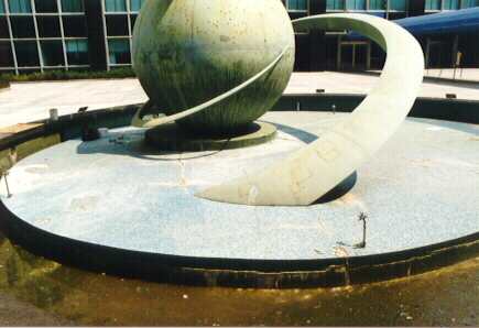 of the deteriorated condition of the bronze sculpture and tile fountain.